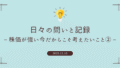 私自身、投資に関してはなるべく“平常心”でいたいと思っています。